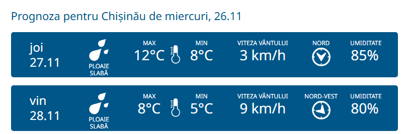 Astăzi, temperatura maximă va atinge 12°C, iar cea minimă va fi de aproximativ 8.0°C.