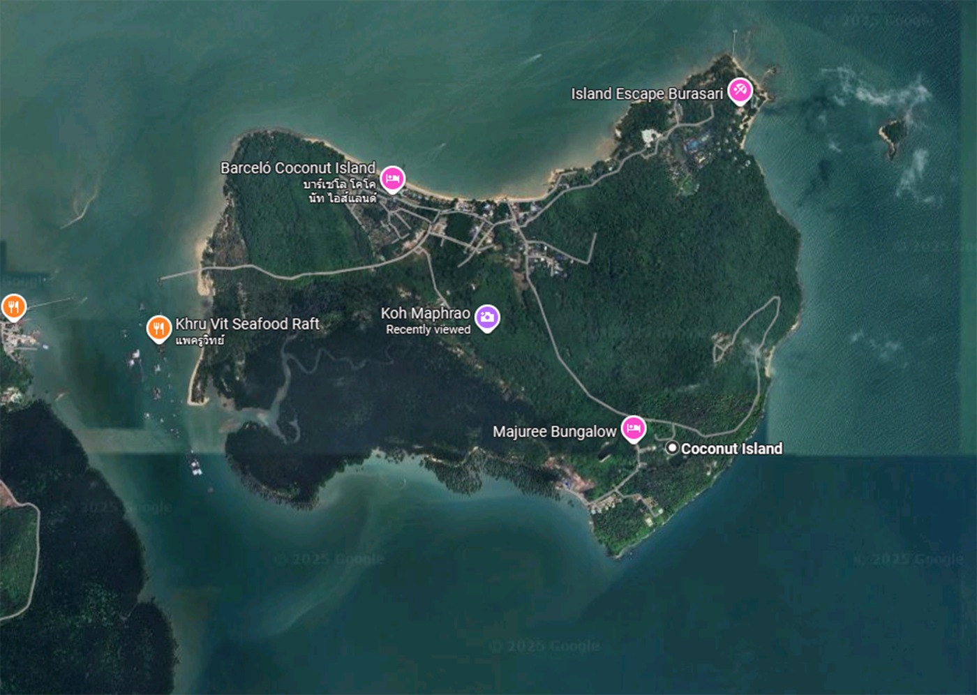 Această insulă este cunoscută sub numele local de Koh Maphrao, un colț de rai ascuns în largul coastei Phuketului. Pe lângă peisajele de poveste, celebra insulă oferă și intimitate, fiind accesibilă doar cu barca. În sigla emisiunii de la Antena 1, Coconut Island este prezentată ca având formă de inimă, însă în realitate aceasta seamănă cu altceva.