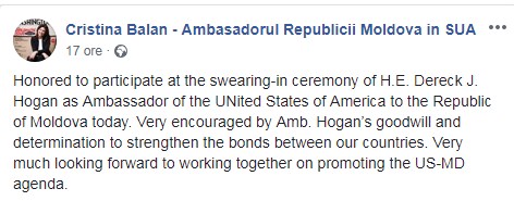 Potrivit postării a Cristinei Balan, ieri diplomatul a depus jurământul în calitate de ambasador.