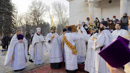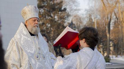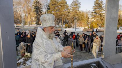 După Liturghie, în scuarul Catedralei Mitropolitane, Înaltpreasfințitul Vladimir a oficiat rânduiala sfințirii Aghesmei Mari.