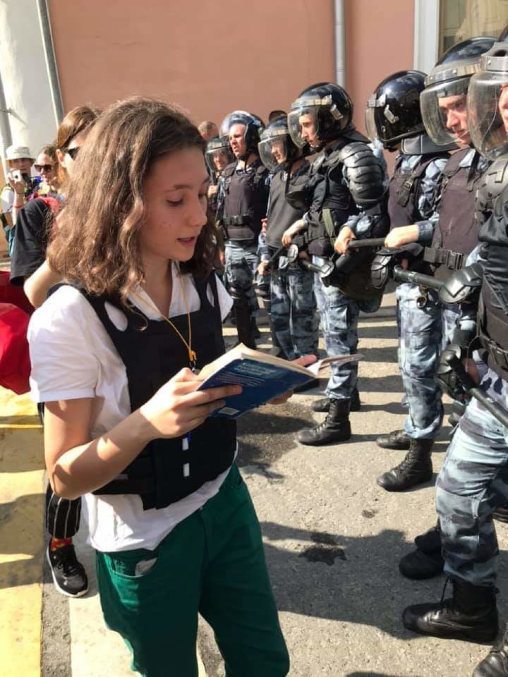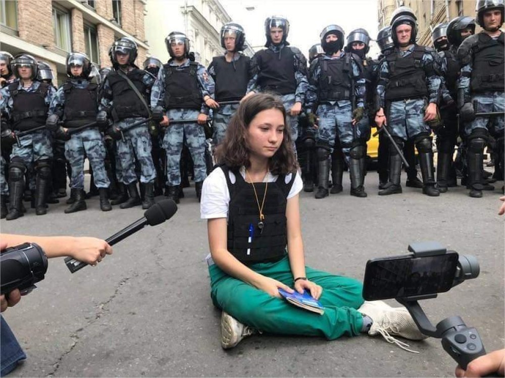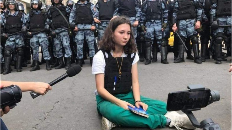 Aflată la protestul din Moscova, de sâmbăta trecută, Olga Misik s-a așezat chiar în fața forțelor de ordine și a citit cu voce tare din Constituția Rusiei, care afirmă explicit libertatea de întrunire a oamenilor.