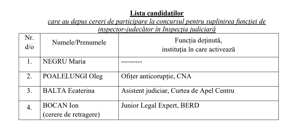 În lista candidaților s-au regăsit, inițial, patru doritori de a ocupa postul vacant.