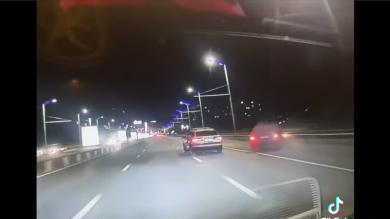 Momentul, când șoferul ajunge Poliția din urmă a fost filmat de o cameră de bord a altui automobil aflat în trafic, iar imaginile video au fost publicate pe rețele.
