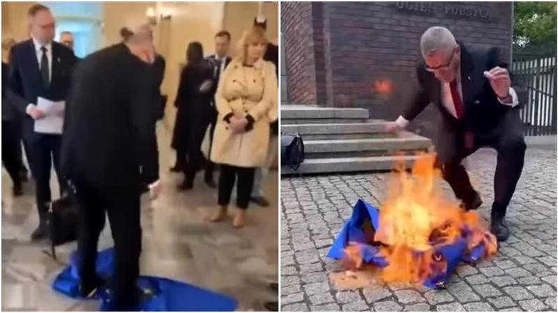 Într-un alt videoclip, se vede cum Braun dă foc steagului din fața monumentului de la mina „Wujek".