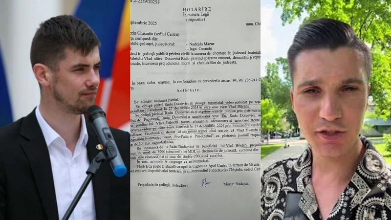 Liderul unionist Vlad Bilețchi a anunțat că a câștigat un proces în instanță împotriva activistului PAS, Radu Dutcovici. Potrivit lui Bilețchi, instanța l-a obligat pe Dutcovici să șteargă un videoclip considerat defăimător, să prezinte scuze publice cu un text clar și să mențină aceste scuze timp de 30 de zile.