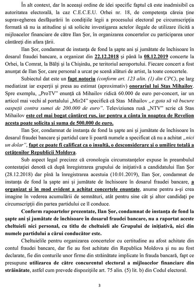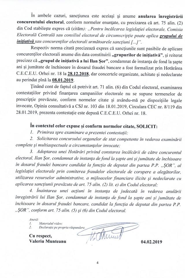 „Țin să precizez că conținutul prin volum al pungilor oferite și evidențiate în materialul video, denotă niște acțiuni vădite ce pot fi calificate ca corupere a alegătorului, nefiind cu certitudine niște „cadouri simbolice”, astfel cum sunt definite în art. 41 alin. (6) din Codul Electoral”, se menționează în contestația lui Munteanu.