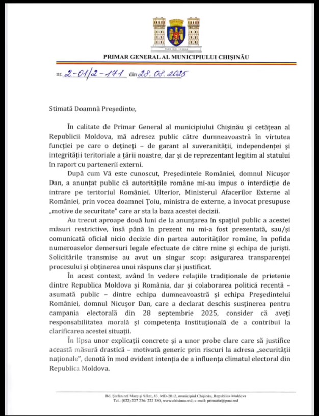 În aceeași zi, Ministerul Afacerilor Externe de la București a confirmat că Ion Ceban, primarul de Chișinău, are interdicție de intrare în România, pe un termen de 5 ani.