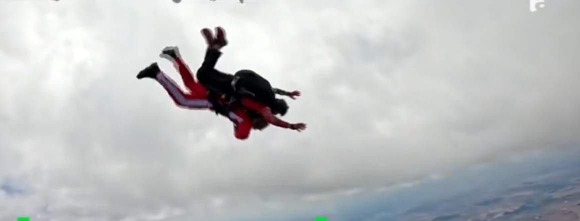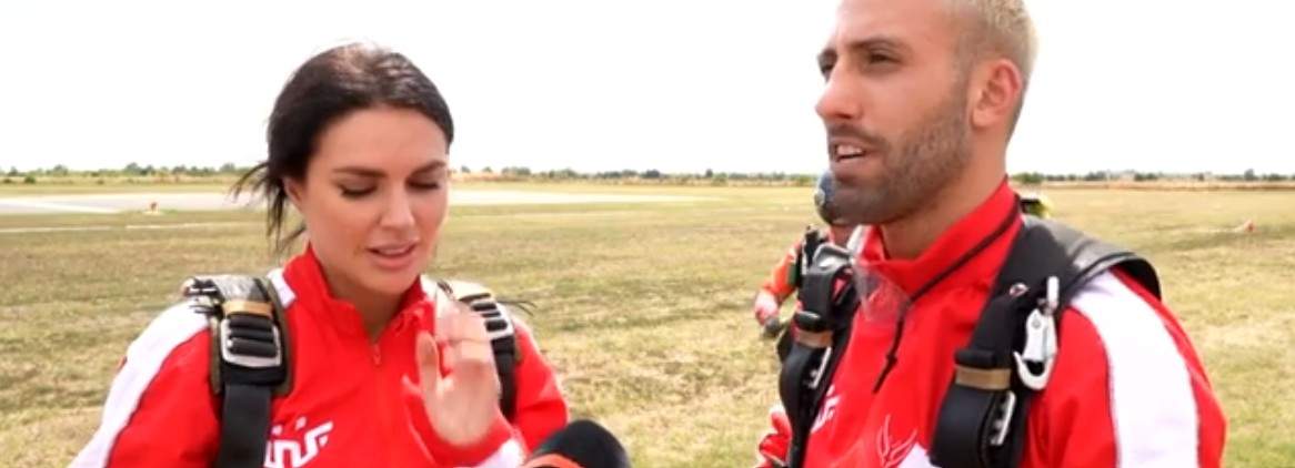 A mers împreună cu dansatoarea Cristina la Aerodomul Clinceni și au sărit în gol din avion, de la 4.000 de metri.