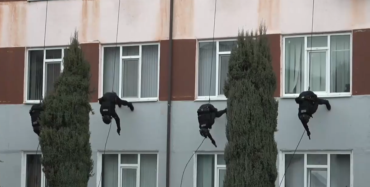 (video) Mascați Fulger, în misiune: Momentul în care asaltează o clădire și „salvează un polițist luat ostatic de bandiți”