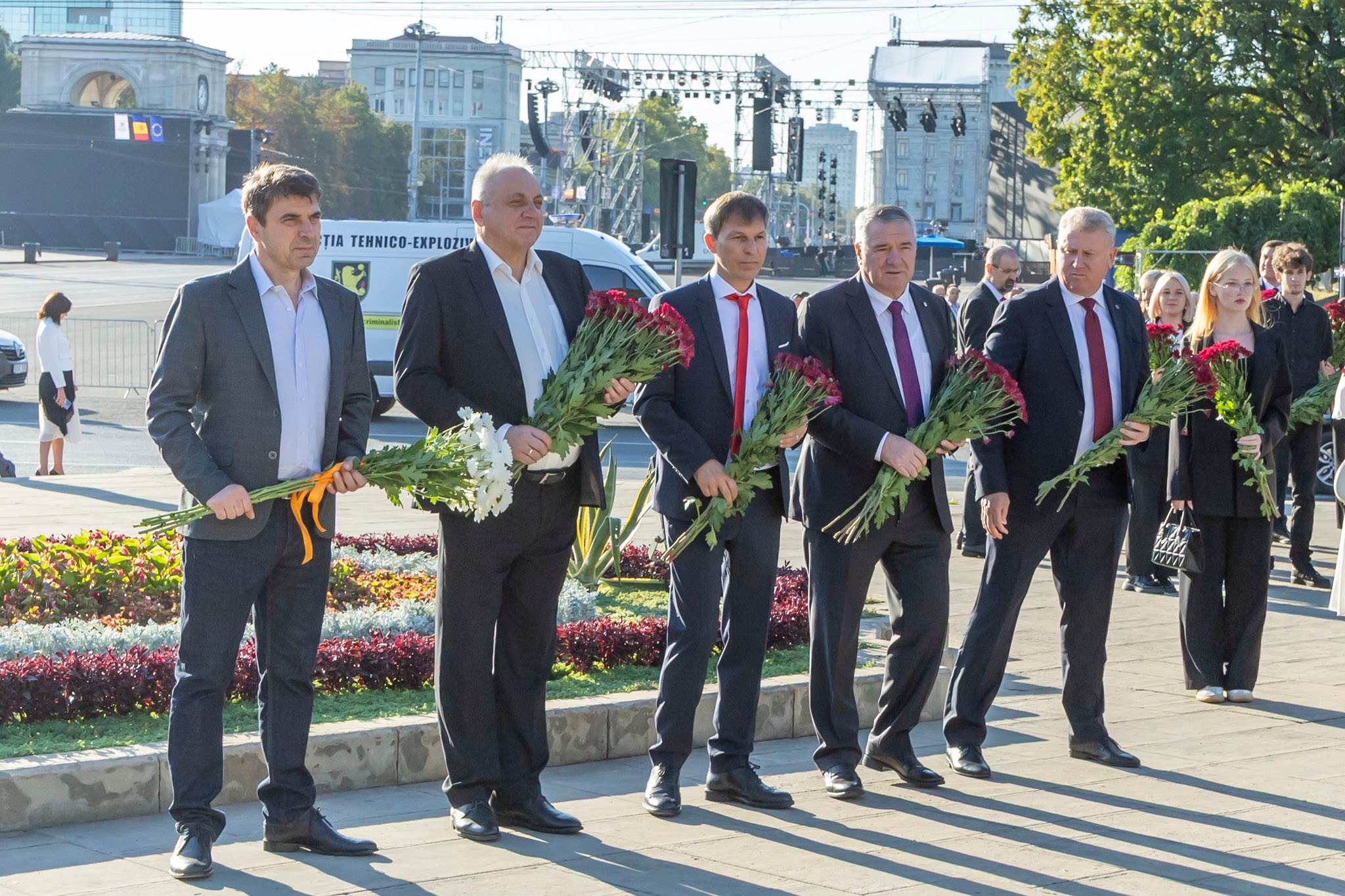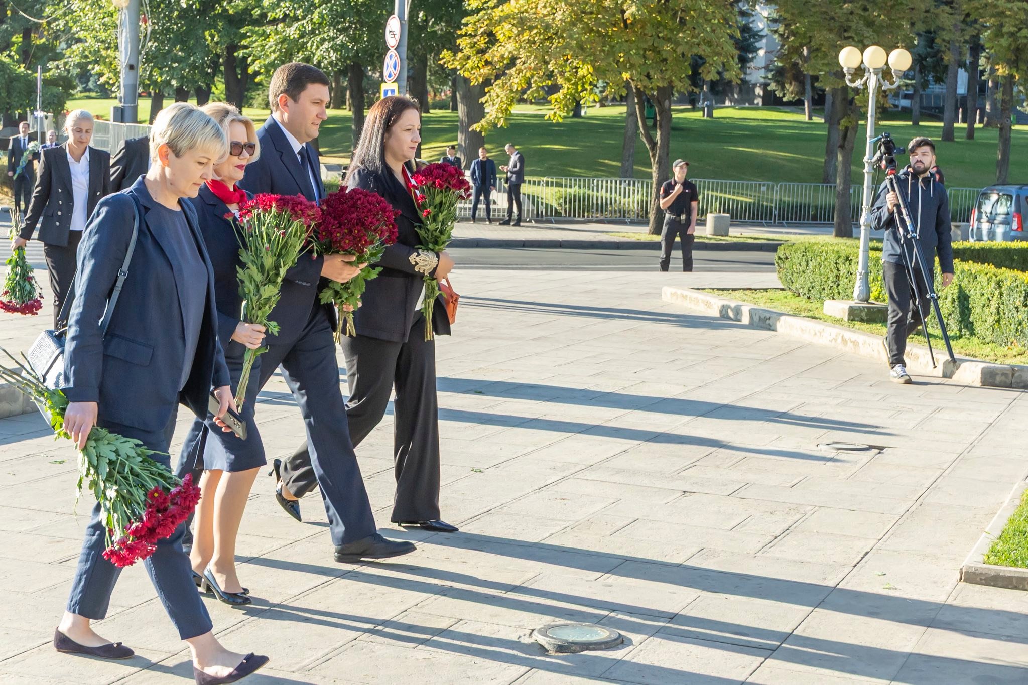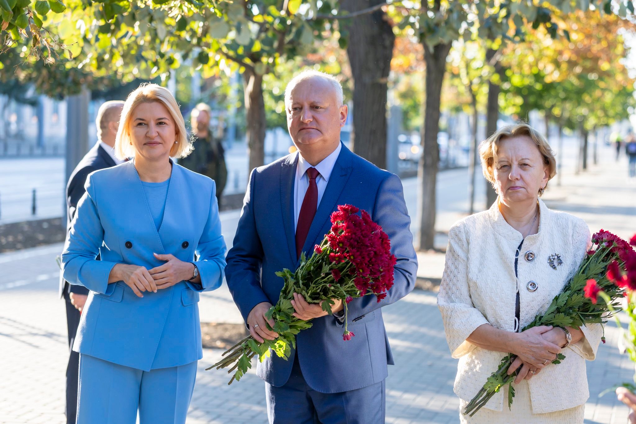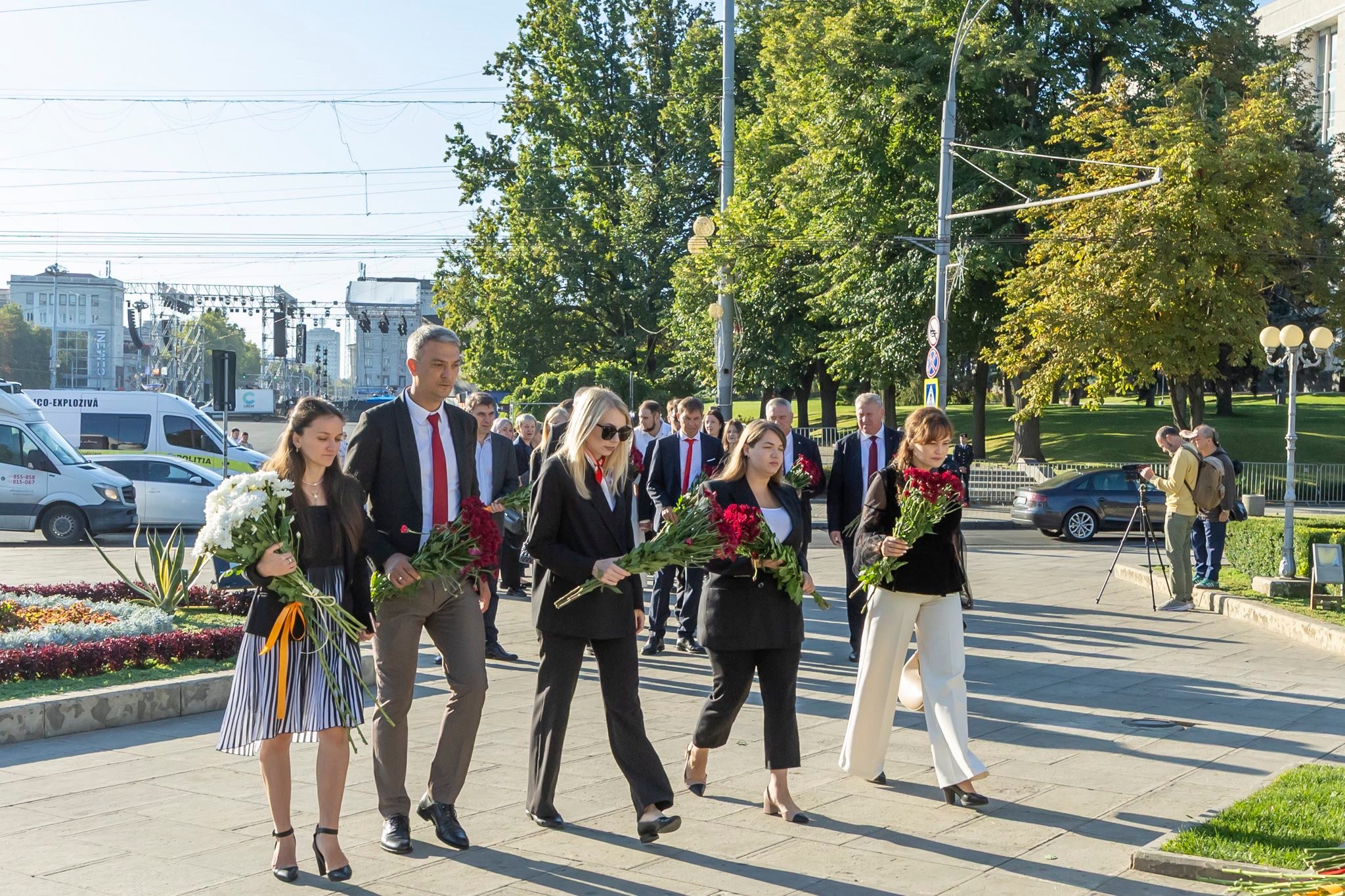 Președinta Maia Sandu, prim-ministrul Dorin Recean și președintele Parlamentului, Igor Grosu, însoțiți de miniștri și deputați au depus flori la monumentul „Maica Îndurerată” de la Complexul Memorial „Eternitate”, apoi au ținut un minut de reculere pe eroii căzuți.