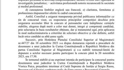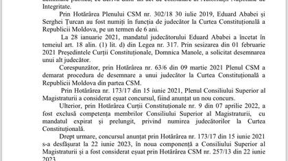 Anterior, Victoria Sanduța, care face parte din lista celor 13 magistrați propuși de CSM pentru numirea în funcția de judecător până la atingerea plafonului de vârstă, dar respinși de șefa statului, Maia Sandu, a scris, pe Facebook, că după această decizie, a avut o situație neplăcută cu un reprezentant al unui ONG din țară, care a presupus că aceasta ar avea un conflict personal cu președinta și chiar i-a recomandat să se adreseze la organele competente, pentru a afla „de ce informație dispune Președinția în privința ei”, odată ce candidatura i-a fost respinsă.