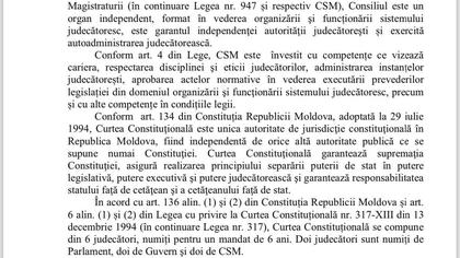 Acest abuz pe care îl comite CSM în prezent în raport cu mine nu se deosebește cu nimic de interpretarea Curții Constituționale din iunie 2019 care spunea atunci că 3 luni sunt egale cu 90 de zile şi o perioadă de 2 săptămâni am avut 2 Guverne şi 2 Prim-miniştri. Atunci Curtea Constituțională şi-a retras hotărârea prin care a dat o asemenea interpretare şi şi-a dat demisia in corpore (toți judecătorii Curții Constituționale de atunci și-au dat demisia într-o zi).