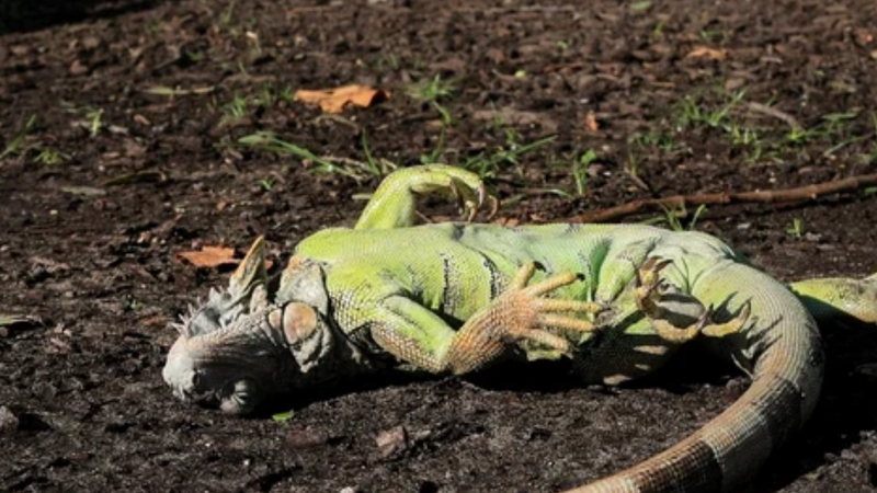 Autoritățile de la Florida Fish and Wildlife Conservation Commission (FWC) explică că este vorba despre iguane verzi, reptile cu sânge rece care, atunci când temperaturile scad aproape de 0 °C, se imobilizează complet.