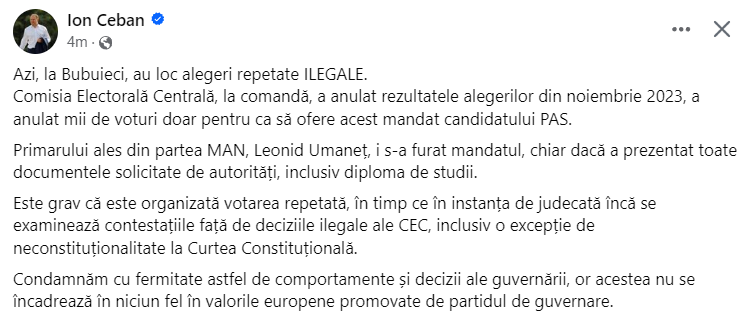 „Azi, la Bubuieci, au loc alegeri repetate ILEGALE.