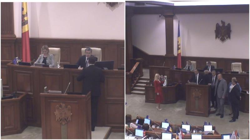 „Dvs vă temeți să auziți ce?”, l-a întrebat Denis Ulanov pe Igor Grosu, apropiindu-se de tribuna centrală, dar speakerul nu i-a răspuns, solicitând inițierea votului pentru proiectul care a stârnit polemici.
