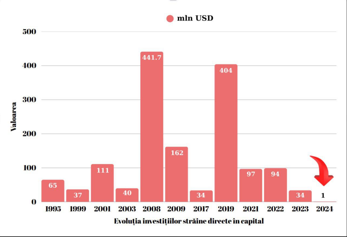 Ministerul Economiei ne anunță că anul trecut am avut doar un milion de dolari investiții străine în capitalul companiilor moldovenești. E cel mai mic din toată istoria Republicii Moldova.