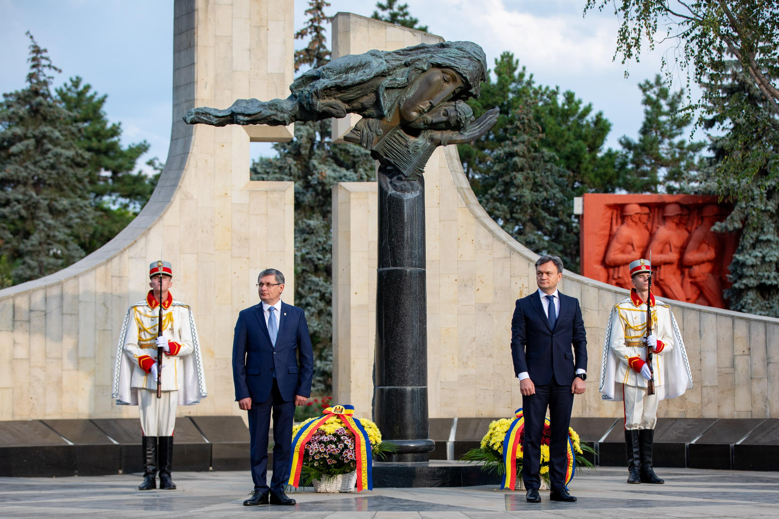 Prim-ministrul Dorin Recean și președintele Parlamentului, Igor Grosu, însoțiți de miniștri și deputați au depus flori la monumentul Domnitorului Ștefan cel Mare și Sfânt.