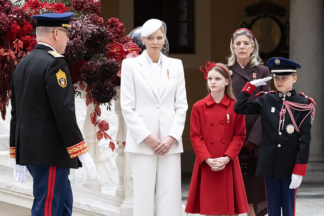 Jacques, moștenitorul tronului monegasc, a purtat o uniformă militară în miniatură, asortată cu cea a tatălui său, în timp ce Gabriella a fost adorabilă într-un paltonaș roșu, cu guler, pantofi asortați și o bentiță elegantă.