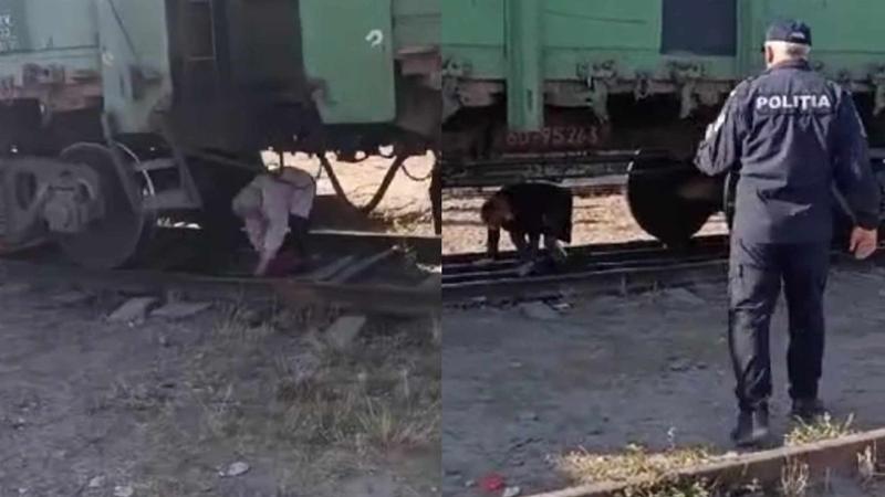 Imaginile șocante, postate pe rețele, arată cum unele persoane trec pe sub un tren, oprit la stație, dar care ar putea porni în orice clipă.