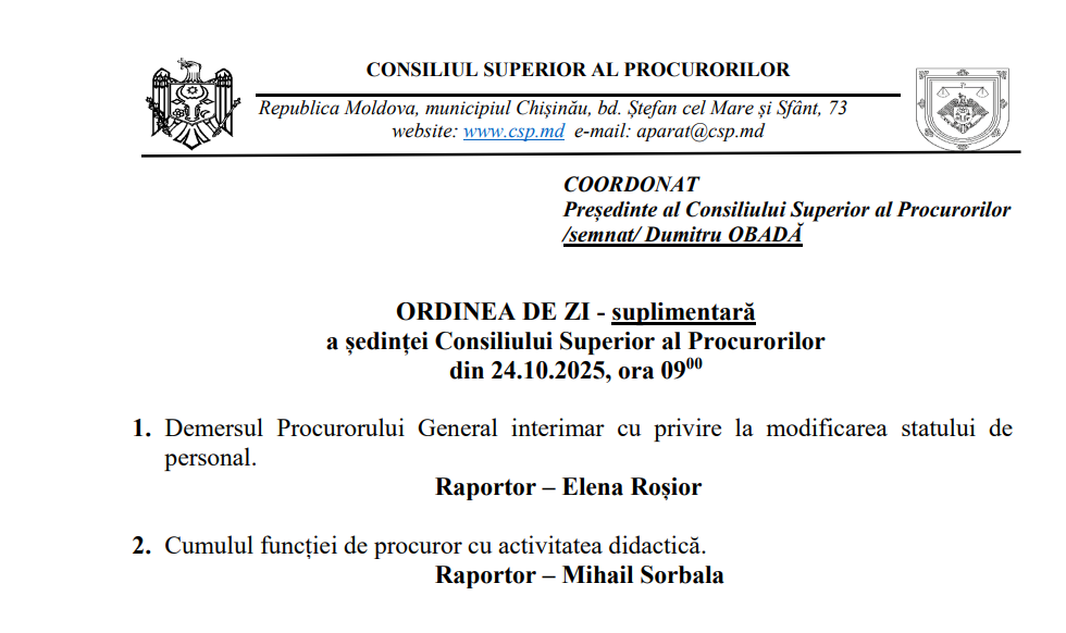 update CSP examinează demersurile cu privire la exprimarea acordului asupra candidaturilor pentru numirea în funcția de adjunct al procurorului-șef al Procuraturii Anticorupție.