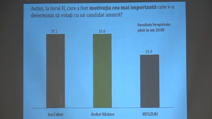 Exit-poll-ul a fost organizat pentru prima dată în ultimii doi ani. Sondajul a fost realizat în 67 de secții de votare în raza municipiului Chișinău.