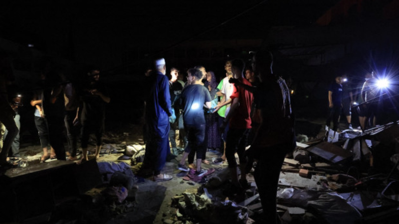 În curtea şcolii, plină de corturi, imagini AFP surprindeau luni rezidenţi care încercau să salveze câteva bunuri sau lemn de foc dintre dărâmături. Farah Nasser, o deplasată împreună cu familia sa de la Beit Hanoun, mai la nord, a fost trezită de bombardament şi a descoperit „oroare şi confuzie” într-un „miros al morţii, de ars, de sulf şi de sânge”. La Spitalul Al-Ahli de la Gaza, femei îşi plângeau rudele în linţolii albe.