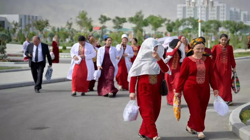 Femeile necăsătorite din Turkmenistan au fost obligate să poarte eșarfe galbene la locul de muncă în Așgabat. Când au întrebat de ce, șefii lor au ridicat din umeri și au spus că ordinul a venit „de sus”.