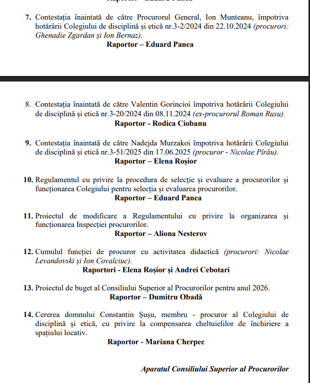 Plenul Consiliului Superior al Procurorilor (CSP) se întrunește astăzi în ședință. Pe ordinea de zi figurează 14 subiecte.
