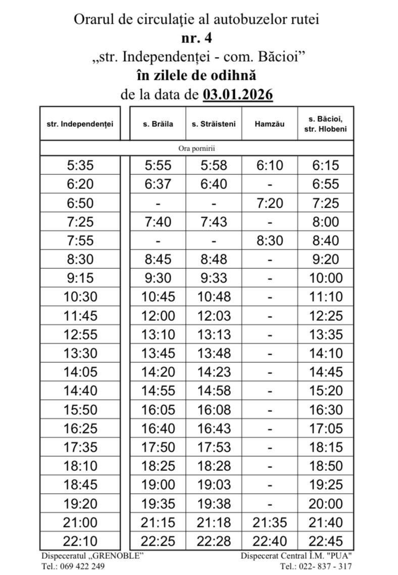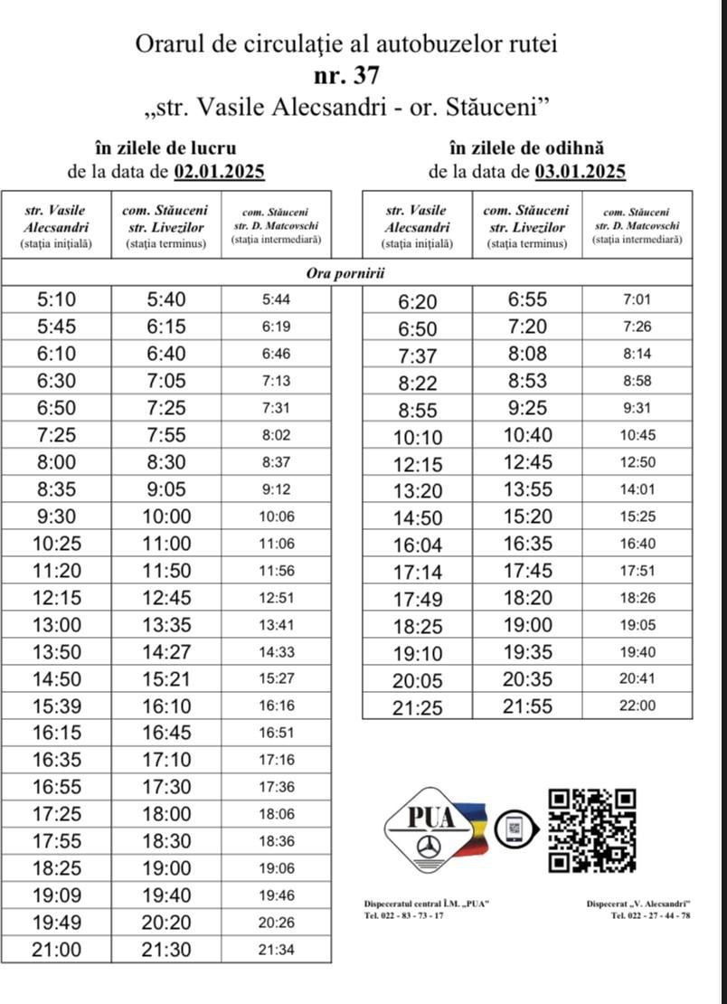 Pentru informații suplimentare, pasagerii pot apela dispeceratul PUA la numărul de telefon 022 837 317.