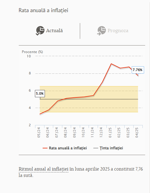 Potrivit BNM, rata inflației în luna aprilie a constituit 7,76%, fiind înregistrată o tendință de scădere.