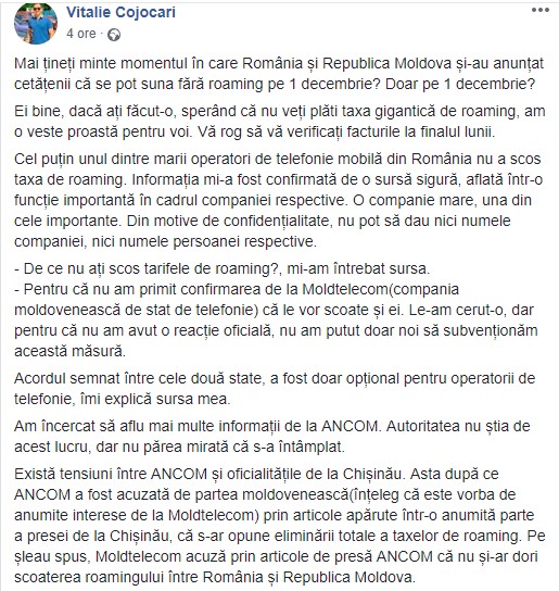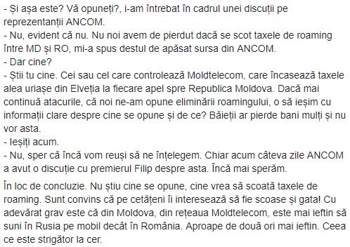 Amintim că la data de 22 noiembrie, între ministrul Comunicațiilor și Societății Informaționale a României Alexandru Petrecut și mininstrul Economiei și Infrastructurii Chiril Gaburici a fost semnt un acord privind eliminarea tarifelor de roaming