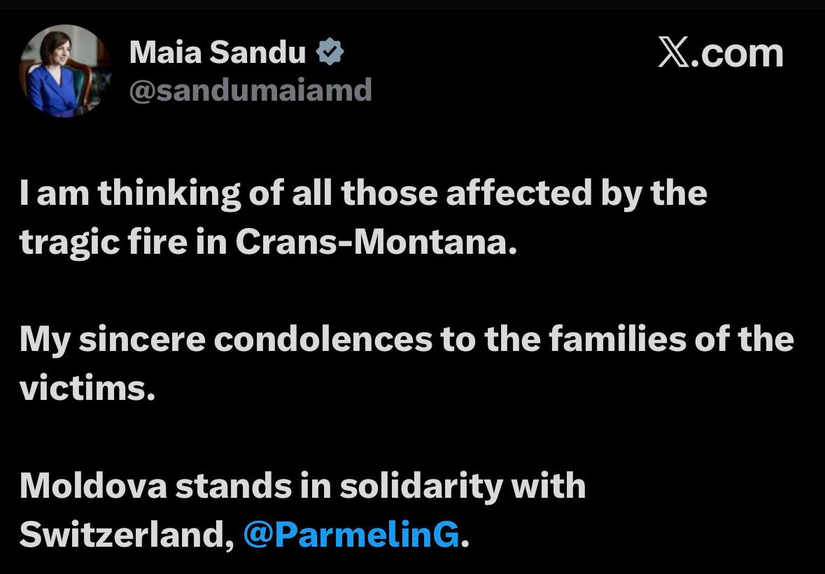 Moldova este solidară cu Elveția”, a scris președinta pe rețele.