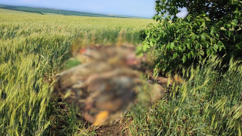Ajunși la fața locului, medicii veterinari din cadrul STSA, au constatat o situație dezolantă: 16 cadavre de porcii domestici, în stare avansată de putrefacție, cu o greutate de peste 200 kg fiecare, aruncați la întâmplare într-un lan de grâu.