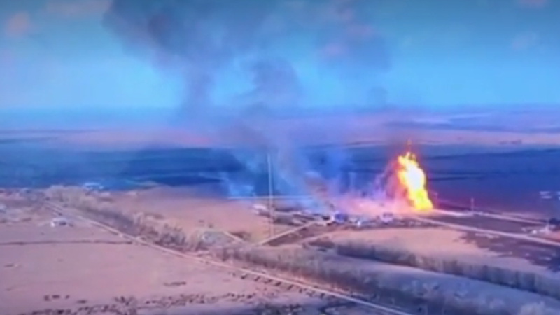 Incendiu puternic la stația de contorizare a gazelor Sudja din regiunea Kursk, după o lovitură a trupelor ucrainene. Imaginile UAV arată flăcări mari de foc la stație.