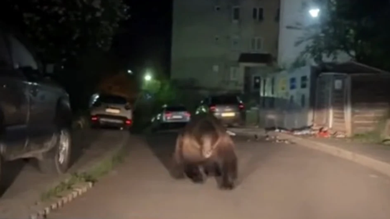(video) Un urs uriaș a fost filmat când se pregătea să atace o mașină, printre blocuri, în România. „Dacă eram pe jos...”