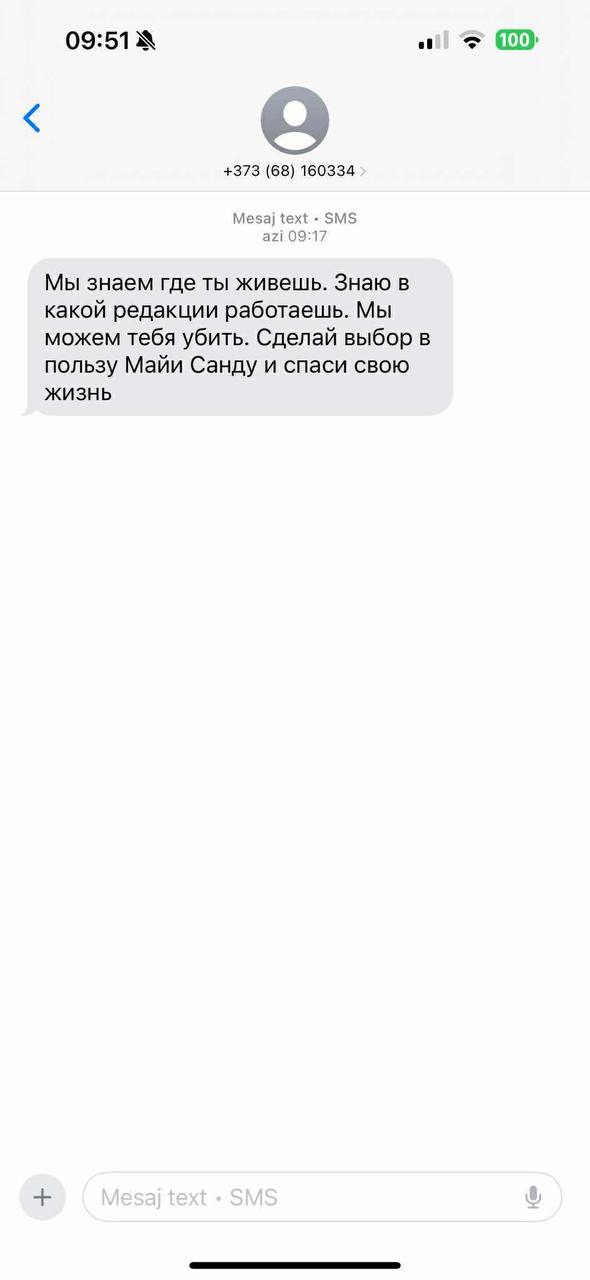 „Știm unde locuiești. Știu la ce redacție lucrezi. Te putem ucide. Alege-o pe Maia Sandu și îți vei salva viața”, se arată în mesaj.