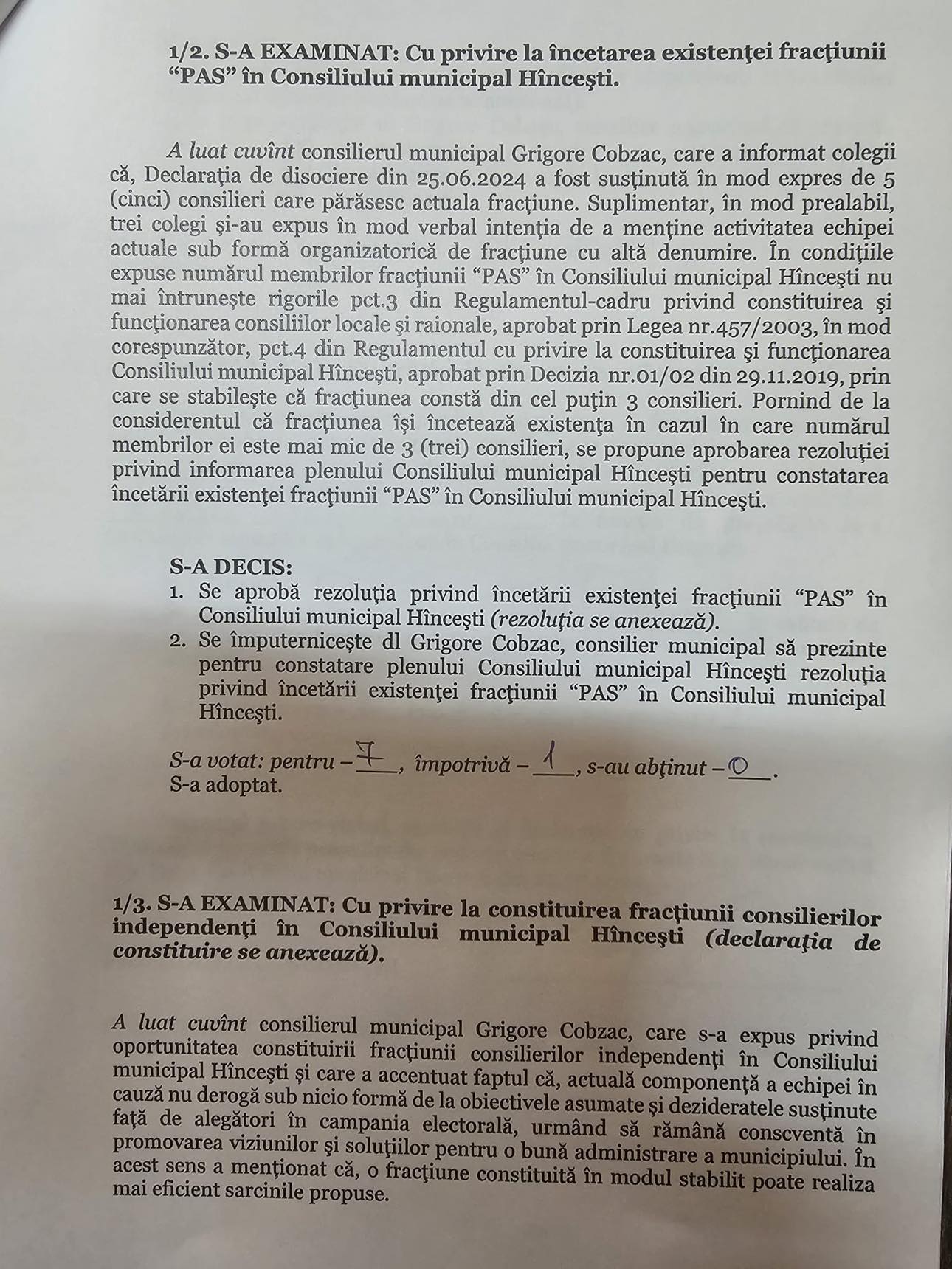 Declarația de constituire a Fracțiunii consilierilor independenți a fost aprobată în ședința de astăzi, 22 august, a Consiliului municipal Hîncești.