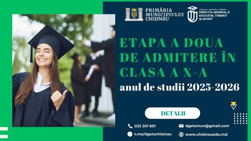„A doua etapă pentru depunerea actelor la admiterea în învățământul liceal începe astăzi, nemijlocit depunerea actelor pentru elevii care nu au reușit sau nu au obținut un loc în prima etapă și va dura până pe 7 august, pe eșcoala.chisinau.md”, a menționat Andrei Pavaloi, șef adjunct al Direcției generale educație, tineret și sport.