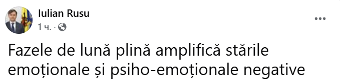 „Fazele de lună plină amplifică stările emoționale și psiho-emoționale negative”, se arată în mesajul fostul șef al CNA.