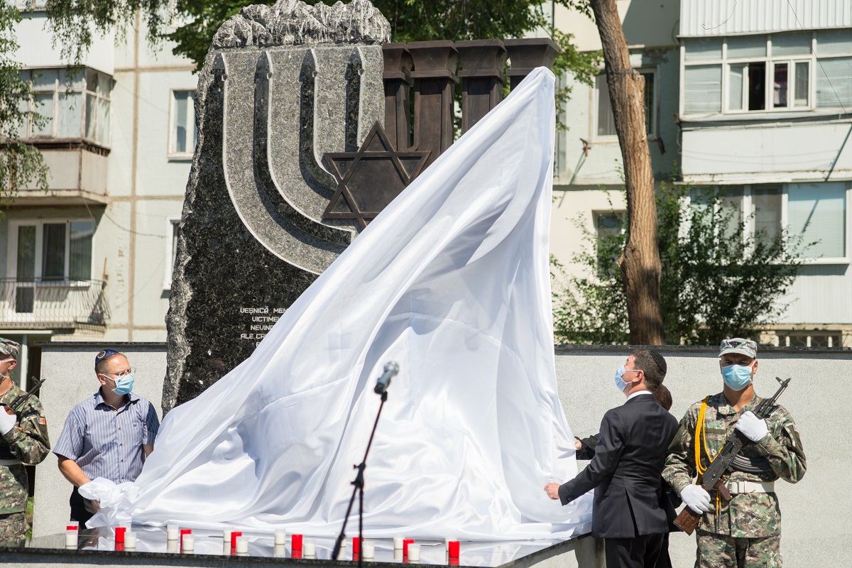 Inaugurare / Sursa:Comunitatea EvreiascăÎn Moldova în perioada 1941-1944 victime ale nazismului erau reprezentanții ai diferitelor grupuri etnice: moldoveni, evrei, romi, ruși, ucraineni etc. Pe teritoriul țării au fost exterminați în masă mai mult de 300 mii de evrei, majoritatea cărora și-au pierdut viața în cele 49 lagăre de concentrare și ghetouri, astfel numite „locurile de detenție temporară”, create prin ordinul dictatorului și criminalului de război Ion Antonescu, situate la Chișinău, Edineț, Mărculești, Vertiujeni, Rîșcani, Orhei, Cahul și alte localități. În timpul deportării evreilor rămași din Basarabia în lagărele de concentrare și ghetourile din Transnistria mulți au fost uciși și au pierit în drum.