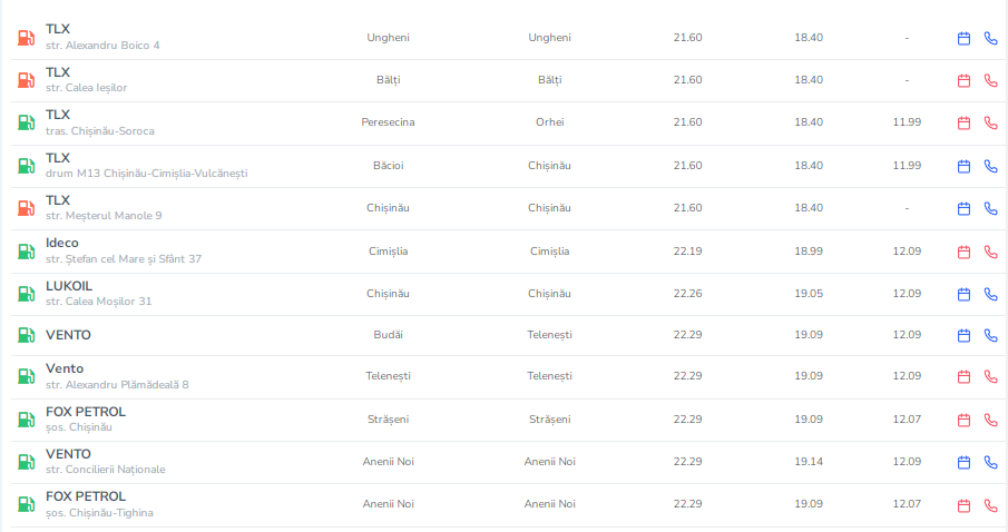 Prin urmare, un litru de benzină va costa mâine 22,48 lei, iar unul de motorină - 19,26.