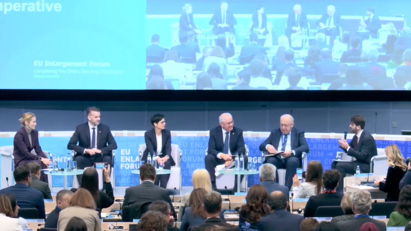 Premierul moldovean a fost inivitat pe scenă, alături de alți oficiali, după ce comisara Europeană pentru Extindere, Marta Kos a ținut un discurs despre „democrație, propagandă și interferențe” în fața celor prezenți.