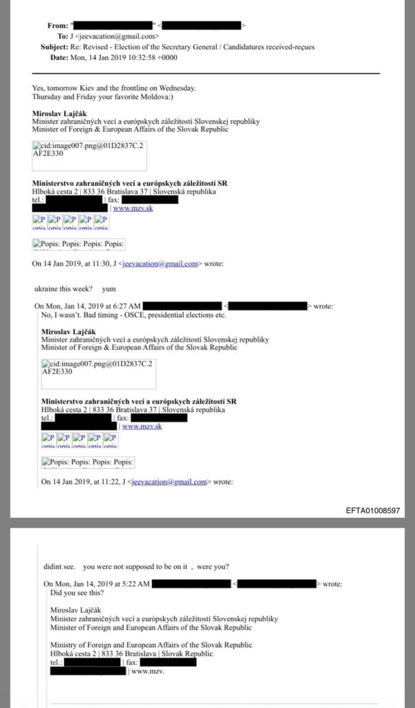În aceeași perioadă, în corespondența cu Jeffrey Epstein, Lajčák transmitea salutări din „Moldova iubită” și menționa că „fetele sunt chiar foarte frumoase”.