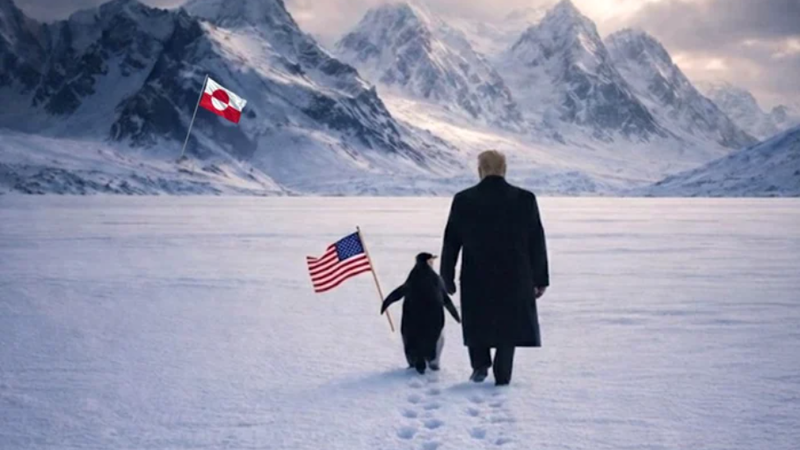 Postarea, însoțită de mesajul „Îmbrățișează pinguinul”, a devenit rapid virală, însă a stârnit mai ales ironii, întrucât pinguinii nu trăiesc în Groenlanda, ci în Antarctica, în emisfera sudică.