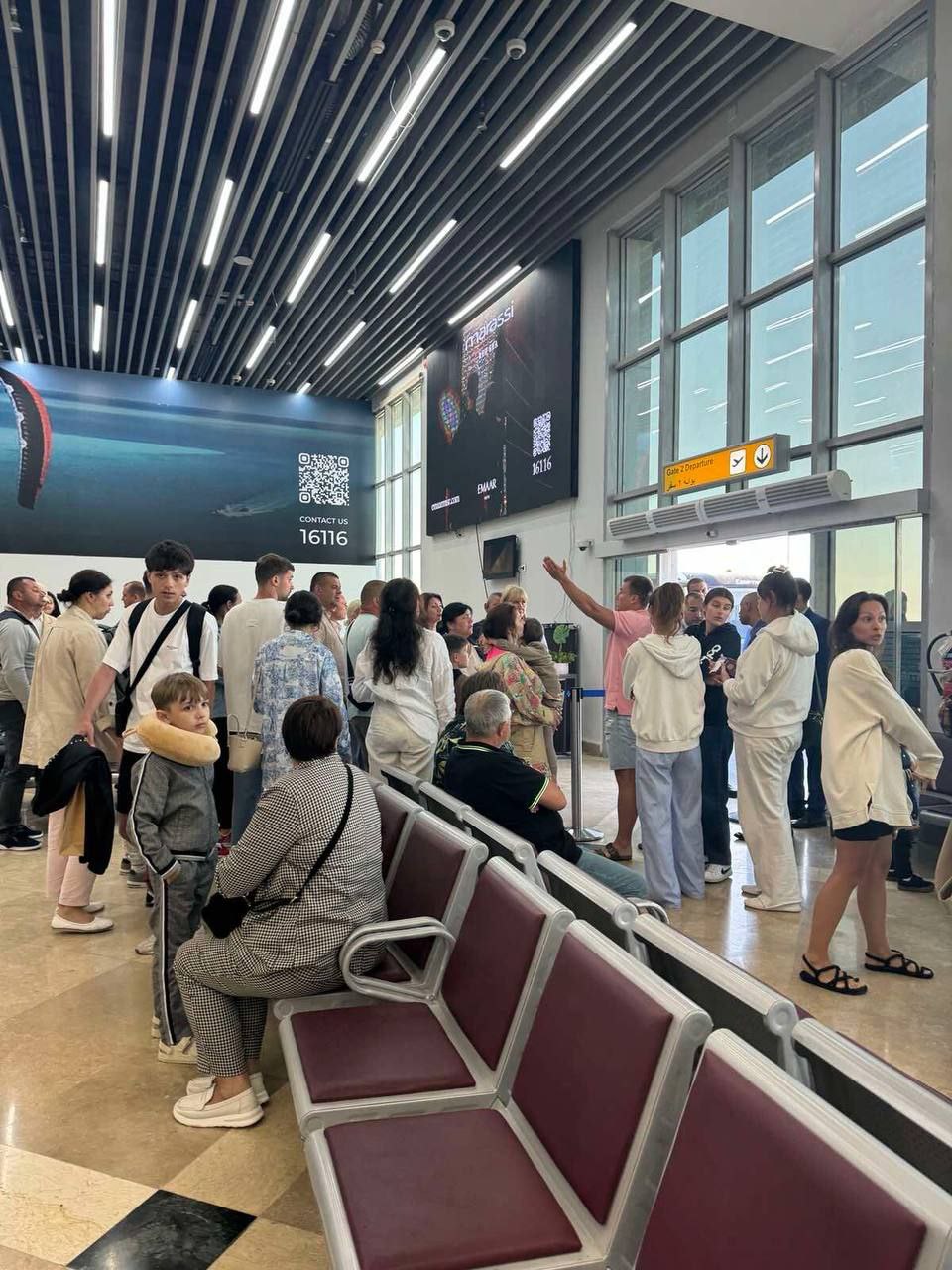 O imagine din aerogară, în care se observă oamenii care-și așteaptă zborul, a fost postată pe canalul de Telegram Index.