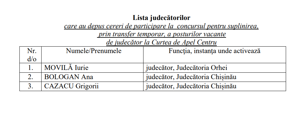 update Membrii CSM examinează desfășurarea concursului pentru suplinirea, prin transfer temporar, a unor posturi vacante de judecător la Curtea de Apel Centru.