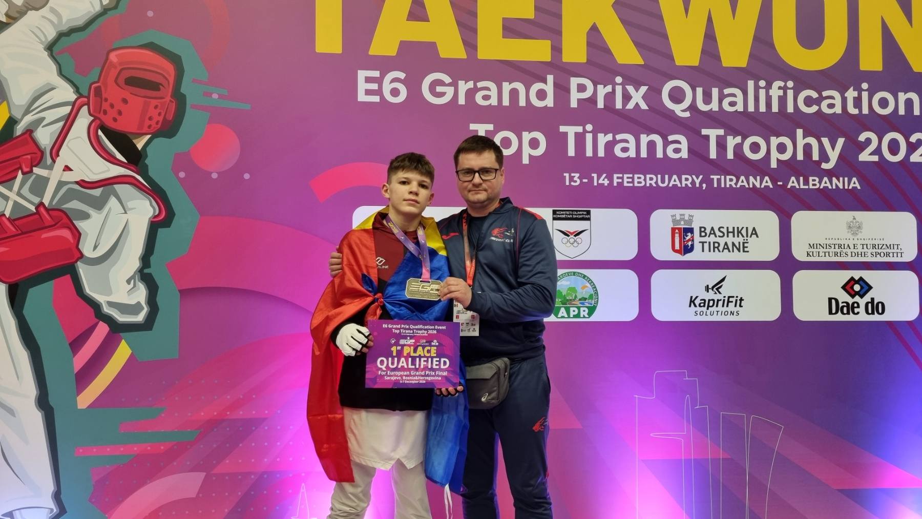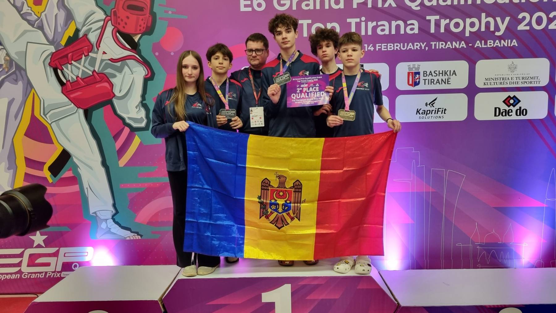 Trei sportivi moldoveni au urcat pe podium la European Grand Prix Open Qualification Tournament E6 la taekwondo WT. Potrivit Primăriei Chișinău, competiția s-a desfășurat în perioada 13-14 februarie 2026, în orașul Tirana, Albania.