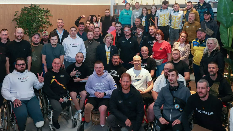 Prințul Harry, care s-a fotografiat cu mai mulți ucraineni răniți, s-a întâlnit joi și cu Natalia Kalmykova, ministrul ucrainean al veteranilor.