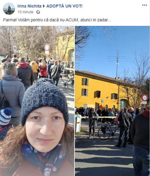 Sute de moldoveni din diasporă votează astăzi pentru a-și alege viitorul. Din imaginile postate pe grupul Adoptă un Vot, vedem o prezență masivă în Italia, Londra, Bruxelles, Iași și Frankfurt.