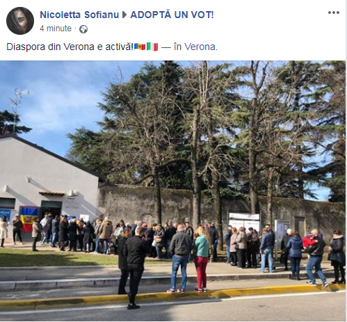 (update 11:30) Între timp, la secția de votare din Verona, moldovenii fac coadă pentru a-și exercita votul.